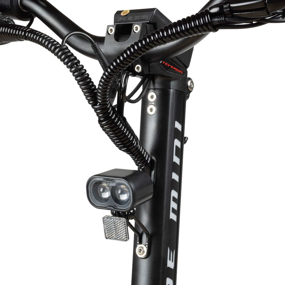 Dazu gehören Blinker im Lenker, eine mechanische Klingel sowie weitere gesetzlich vorgeschriebene Elemente. Für zuverlässiges Bremsen sorgen nicht nur die per Button aktivierbare elektrische Bremse, sondern auch zwei mechanische Scheibenbremsen.