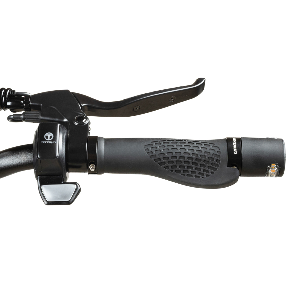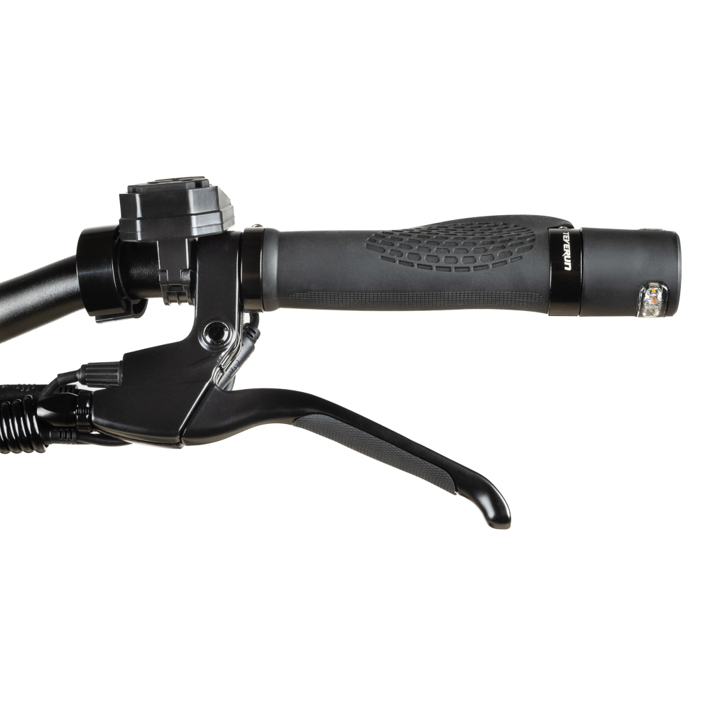 Für hohen Komfort sorgen gekapselte Federstoßdämpfer sowie 10″ schlauchlose Reifen. Besonders praktisch sind der Daumengashebel und der E-Brake-Button, mit dem sich die elektrische Bremse direkt aktivieren lässt.